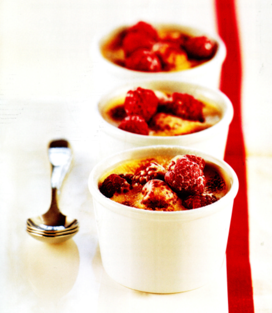 Pour the custard over the raspberries in the ramekins and leave to cool at room temperature for about 1 hour.