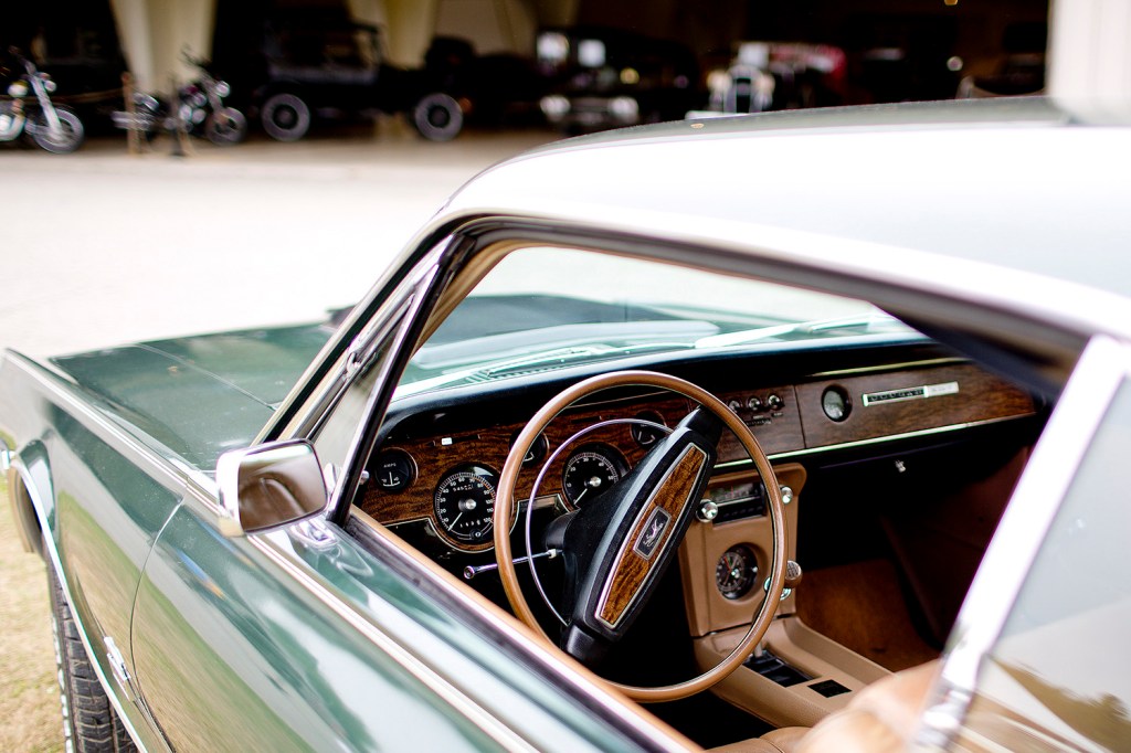 Besides some fading in the dark-green paint and a few cracks in the leather driver’s seat, the Cougar looks nearly like it probably did when it rolled off the factory floor 47 years ago.