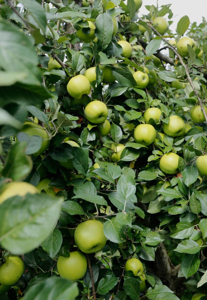 “If you let them turn red, they’re done. They’re junk,” he said, picking up an apple from the ground and watching as his thumb easily pierced the fruit. “See how soft it is when it gets red?”