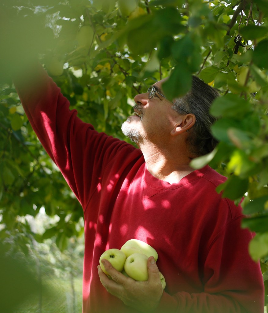 STANDISH — Mike Bendzela reached up to a tree dripping with apples and picked a light green fruit with a red blush on its skin. As he handed the apple over, the scent of strawberries drifted through the old orchard on the early autumn breeze. “Isn’t that lovely?” Bendzela said.