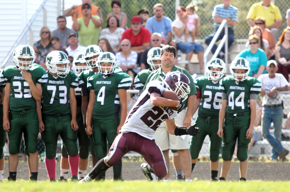 For a half, the Mustangs stayed with the Huskies, who had not allowed a point entering this game. MCI scored first, when Eli Bussell ran 30 yards for a touchdown early in the first quarter. After a good defensive stand late in the first quarter, Mount View took over on its own 3. Tyler Ripley took a pitch from quarterback Cole Hannan and went 97 yards untouched for a score, cutting MCI’s lead to 7-6.