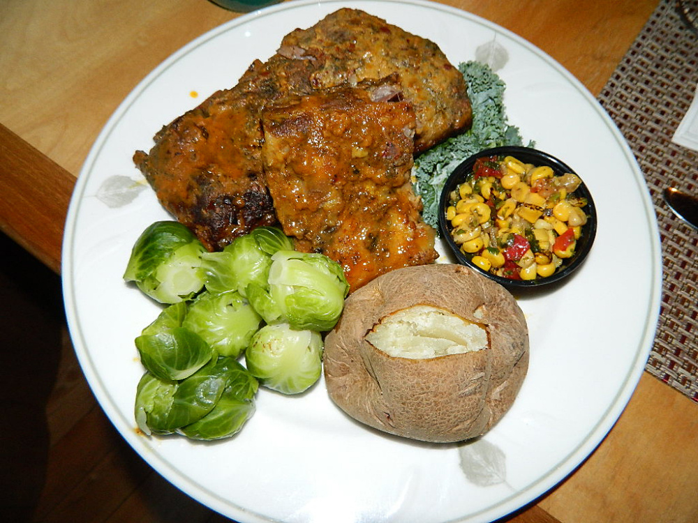 Steve cooked a delicious meal for us. I started with a nice garden salad and ended with an entree of rib-eye steak, baked potato and Brussels sprouts. The rib-eye was massive.