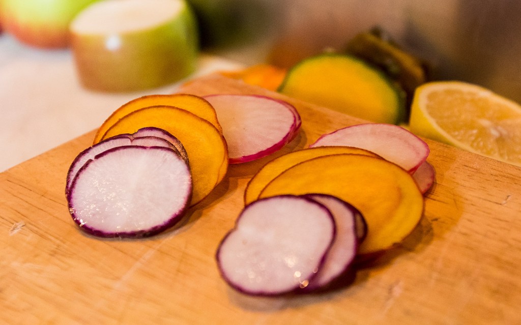 The format of the monthly get-togethers mimics The Food Network’s “Chopped,” where chefs, two in this case versus the reality show’s four, who are well-matched in experience and cooking styles, are pitted against each other and several mystery ingredients. Local suppliers donate the often exotic ingredients, such as chicken feet, curry leaves and bitter cucumber (December 2014 when Franke and Vargas squared off); or cod roe sack, sunflower buds and lamb sweetbreads (August 2015); or blue Hubbard squash, local apples and tripe (late last month).