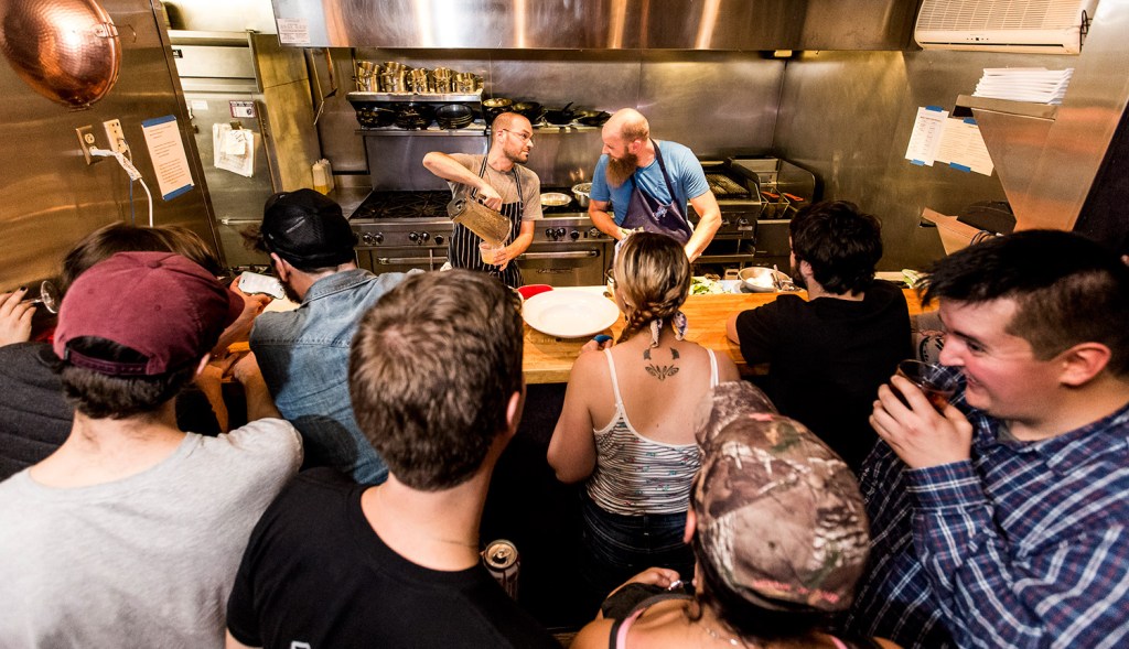 In September, as the more seasoned chefs relaxed, and Cavanna and Ostrow cooked, a more junior set of culinarians peered into the open kitchen, leaning on a thick oak butcher block used to serve dishes to Anneke Jans patrons during regular hours. Most alternated between sipping from cans of PBRs in one hand and snapping pictures of the contestants’ techniques with iPhones in the other. This crew claims no trademarks – everything can be copied at will.
