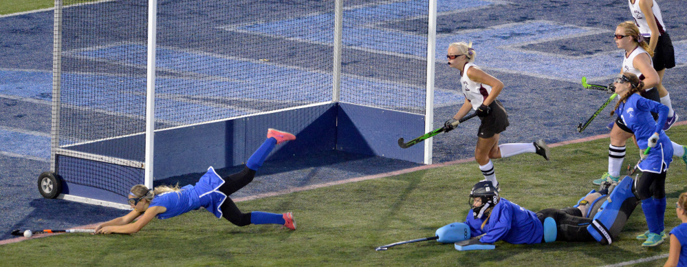 Kali Doiron added an insurance goal for the Huskies (14-4). Goalie Mikayla Carr earned the shutout by turning aside nine shots by Oak Hill (12-6), which was also seeking its first state championship.
