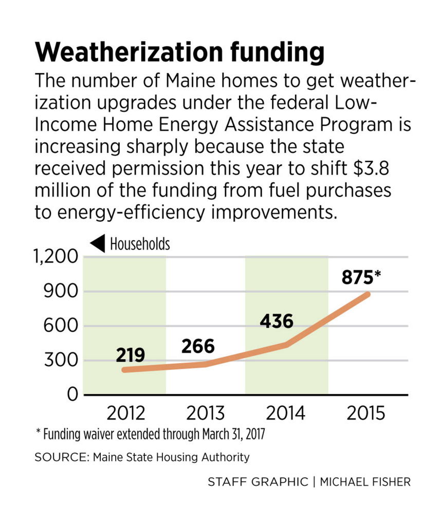 The stepped-up money for weatherization and heating systems is available thanks to a dip last year in applications for LIHEAP, which left the state with a surplus that otherwise would have been returned to the federal government. That created an opportunity for the Maine State Housing Authority to ask permission to increase the percentage of funding earmarked for weatherization this fiscal year from 15 percent to 25 percent, the maximum allowed. A hearing was held last May, and there was no public opposition.