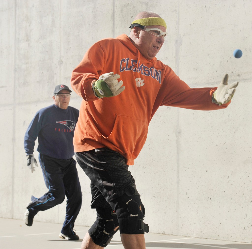 “It’s a unique sport,” said Steve Jack, 65, a retired schoolteacher from Portland who now lives in Windham and took up the game more than 40 years ago. “Not many people play. I guess there’s some appeal there. You tell people you play handball and they say, ‘What? What’s that? How do you play that?’ I say it’s just racquetball without the racket.”
