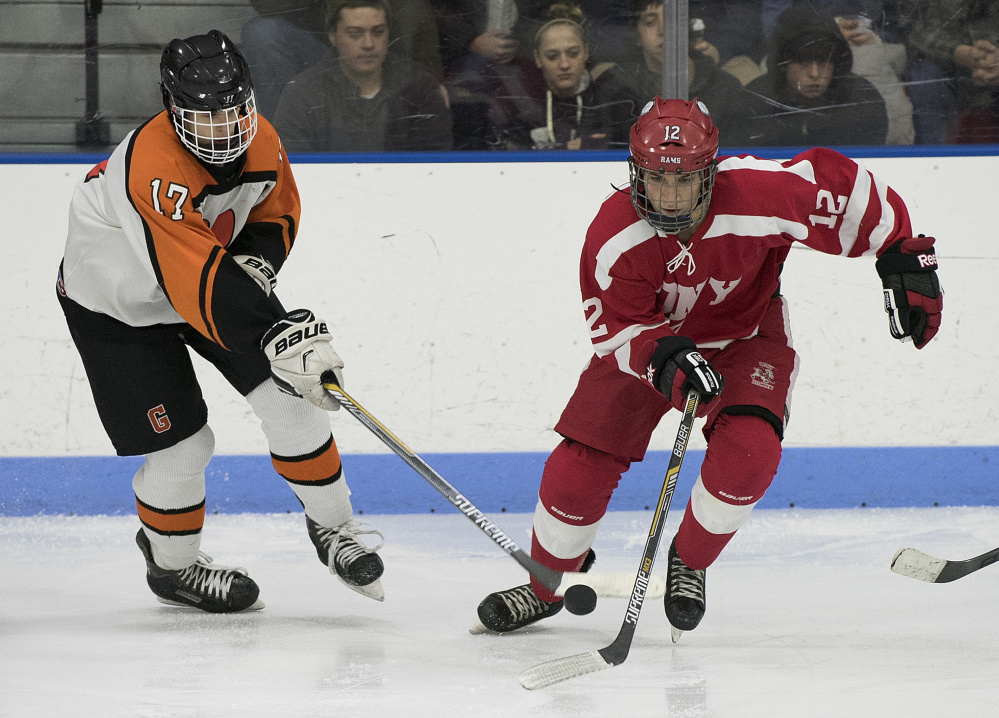 Jake Folsom scored on a breakaway with 46 seconds remaining to cap off an exciting 3-2 win for the Gardiner Area High School hockey team over rival Cony/Monmouth/Hall-Dale in front of a standing-room-only crowd.