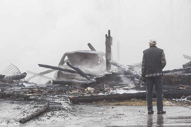 The fire destroyed the contents of the barn, which included Dave Fadden’s tractors and many antiques, as well as Anne Marie Fadden’s minivan.