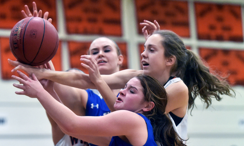 Withee subbed out players five at a time and her second unit forced some turnovers but neither group was able to score. Maeghan Bernard, one of two freshman starters for Winslow, led the team with nine points while leading scorer Heather Kervin scored six.