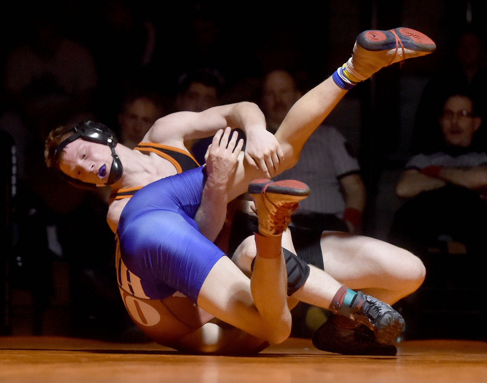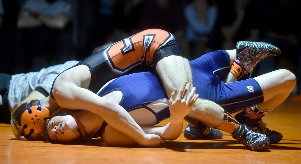 “Our motto is ‘Outwork.’ That’s what we do in the practice room. That’s what we do on the mat. That’s what wins our matches,” Skowhegan’s Luke Bolster said.