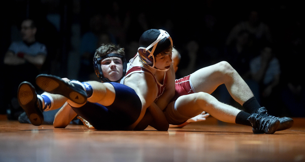Gardiner’s Peter Del Gallo took a 9-0 win over Danny Buteau of Oak Hill at 122. At the 140-pound championship, Peyton Cole of Ellsworth defeated Cam Bell of Gardiner, 12-0.