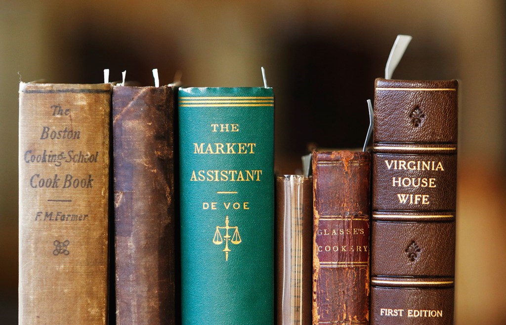 The heart of the collection ranges from Colonial times through the 1800s. Some of the cookbooks contain blank pages where the owners have handwritten their favorite recipes, and more than one owner tucked away a favorite recipe from the local newspaper.