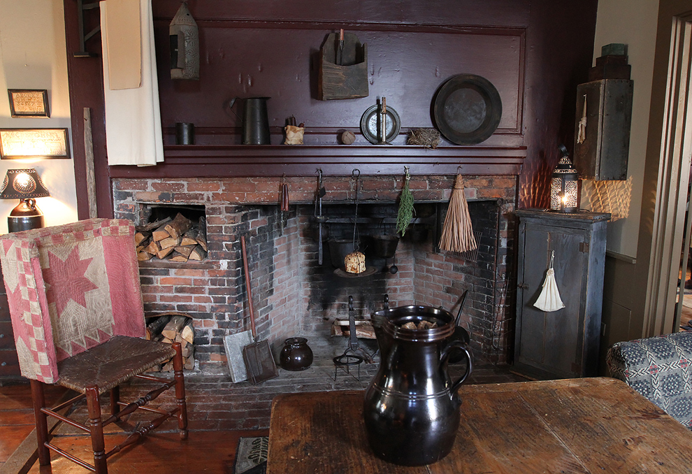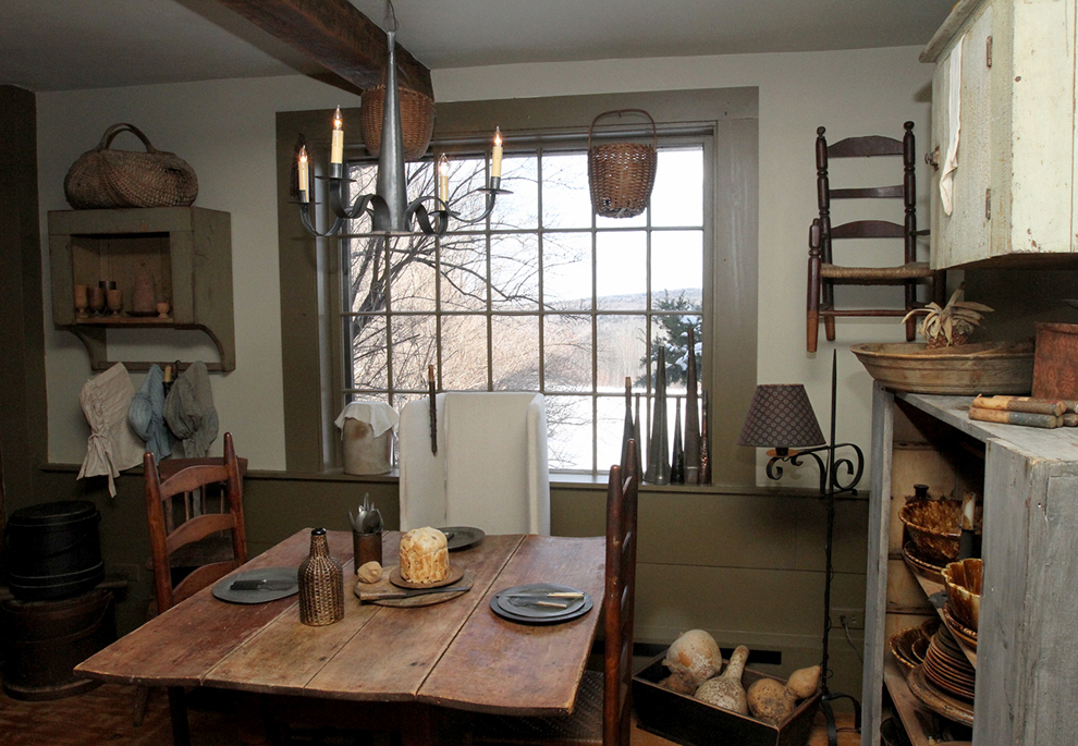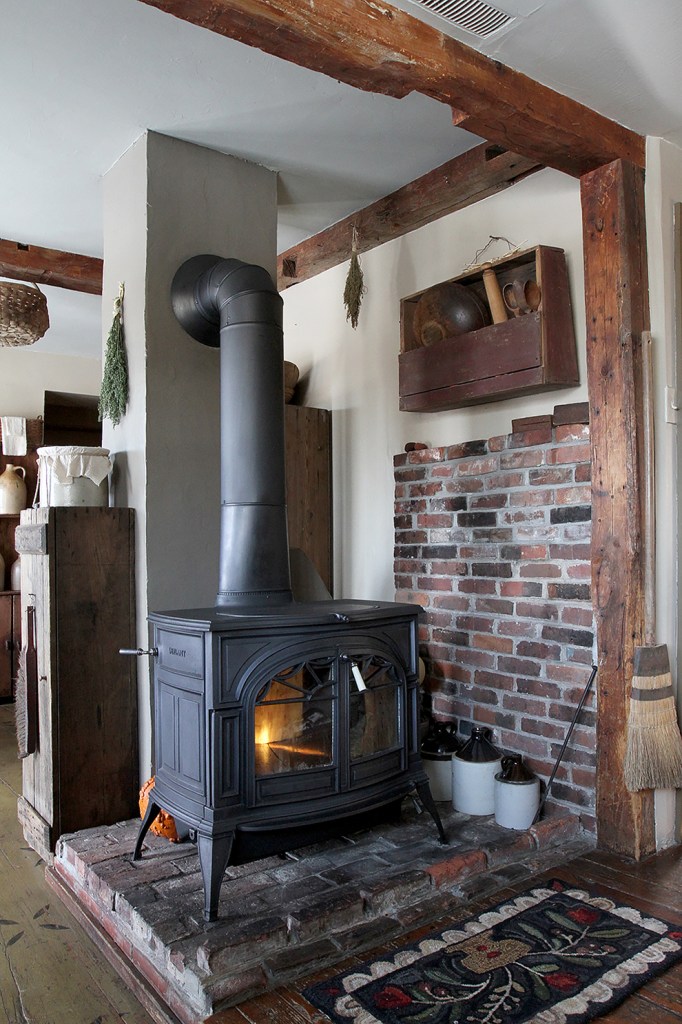 Despite its historical accuracy, the property is no museum, but a lived-in, cherished home, wonderfully comfortable on the coldest winter day thanks to great efficiency (new windows, six heating zones, Defiant wood stove wafting warmth in the kitchen, etc.) The center chimney is truly the the home’s heart. (The behind-the-front-staircase space around it, which with its hooks has been enclosed, once served as the smokehouse.)