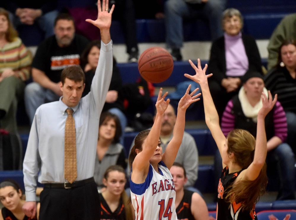 The Eagles parlayed the quick start to a 17-12 lead at the end of the first quarter. Gardiner battled back to within 19-17 on a Leslie Stevens (10 points, seven rebounds) 3-pointer. But Messalonskee limited the Tigers to 5-for-32 shooting (16 percent) in the first half and led by five, 25-20, at halftime.
