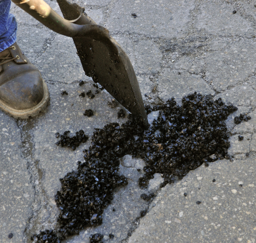 “In the morning, it’s a warm asphalt product that we can fill the pothole with, and because it’s warm, it will hold better than just throwing in cold mix.”