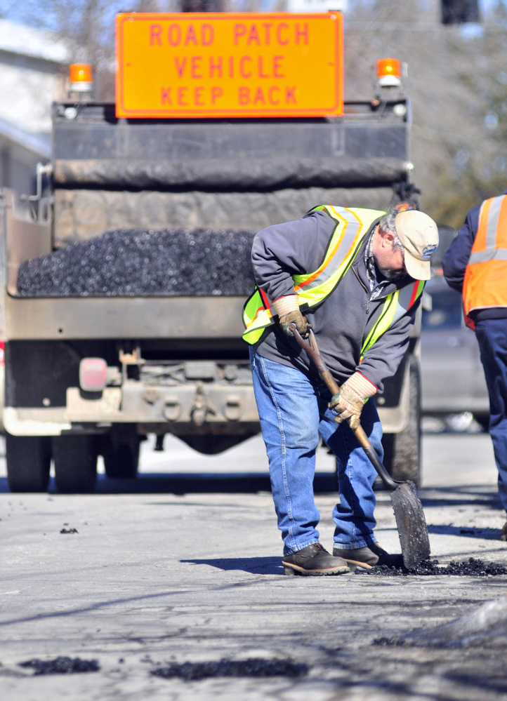 Jones said that legally a pothole must be fixed within 24 hours of it being reported or discovered. On Friday, Augusta’s “pothole patrol” was on Sewall Street fixing a problem spot.