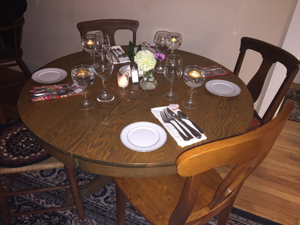 Shari has been serving dinners once a week this winter in the building next to the bakery. This charming house has been transformed into a beautiful dining space. The night we visited, we found a fire blazing and perfectly set tables with fresh flowers, candles, white tablecloths and stemware. The atmosphere could not possibly be more welcoming.