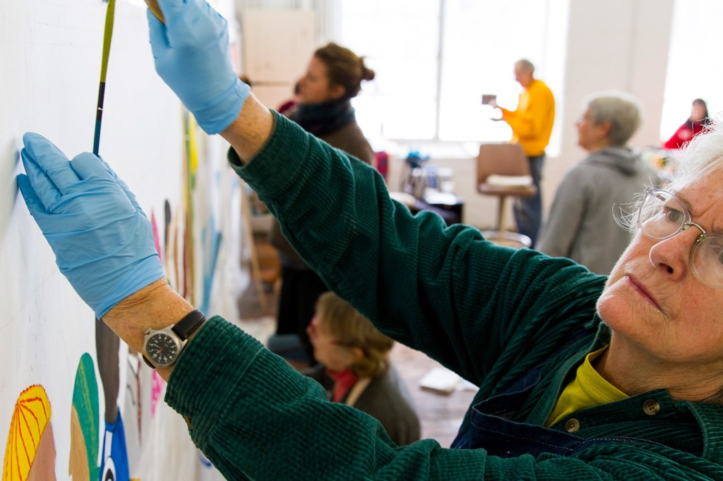 ARRT grew from an idea that Mayers had kicked around for several years. She’s widely known for her community and activist art projects and has fulfilled hundreds of requests for banners, posters and murals. A longtime volunteer, she happily obliged.