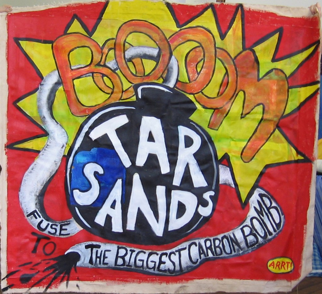 There’s concern that the image of the train might cloud the message about fossil fuels. Someone asks, is the banner protesting trains that transport oil, or raising concerns about the dangers of fossil fuels?