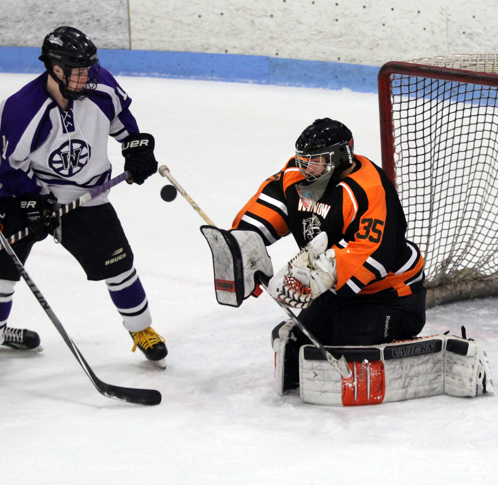 Waterville opened up some breathing room 3:45 into the final period on the power play, as Roderigue found Wentworth on a nice feed out front from behind the net. From there the Waterville defense and a number of Winslow penalties kept the Black Raiders from mounting any sort of comeback.