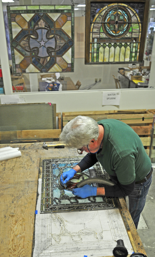 Parkhurst said the company has good relationships with stained glass artisans such as Bolton and Lucy Boucher, who is doing the highly detailed window painting required for the project, because it has been in the business for some 26 years, in many cases providing artisans with their raw materials. He said good artists are hard to come by.