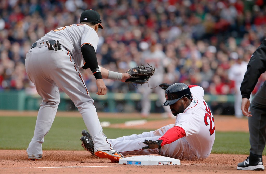 Boston tied it again in the seventh. Holt worked a one-out walk and hustled to third on Swihart’s single to center. Bradley hit a grounder to second. Baltimore went for the double play and Bradley just beat the throw, allowing Holt to score.