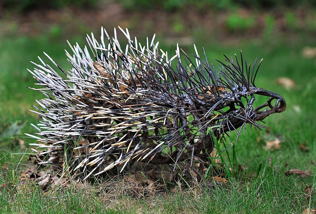 It’s a prickly little devil, with 6-inch steel nails that have been sharpened at the tips to replicate a real porcupine’s quills.