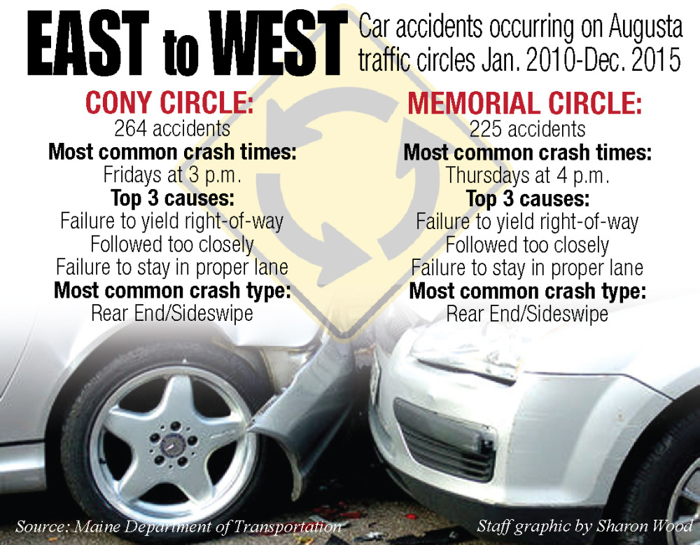 Or maybe, you’ve just had a look at the crash data. Both Cony Circle (on the east side of the Kennebec River) and Memorial Circle (on the west side) have had more than 200 traffic accidents in the last six years, according to the Maine Department of Transportation.