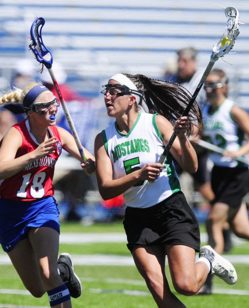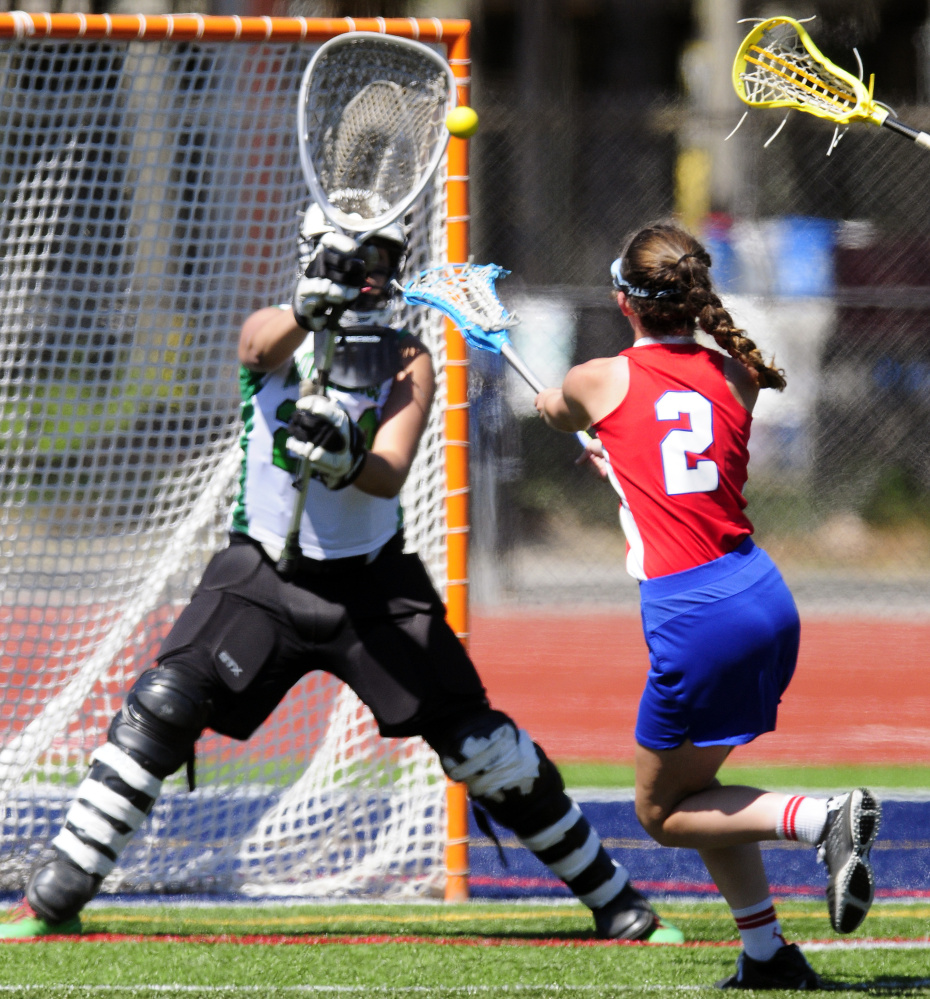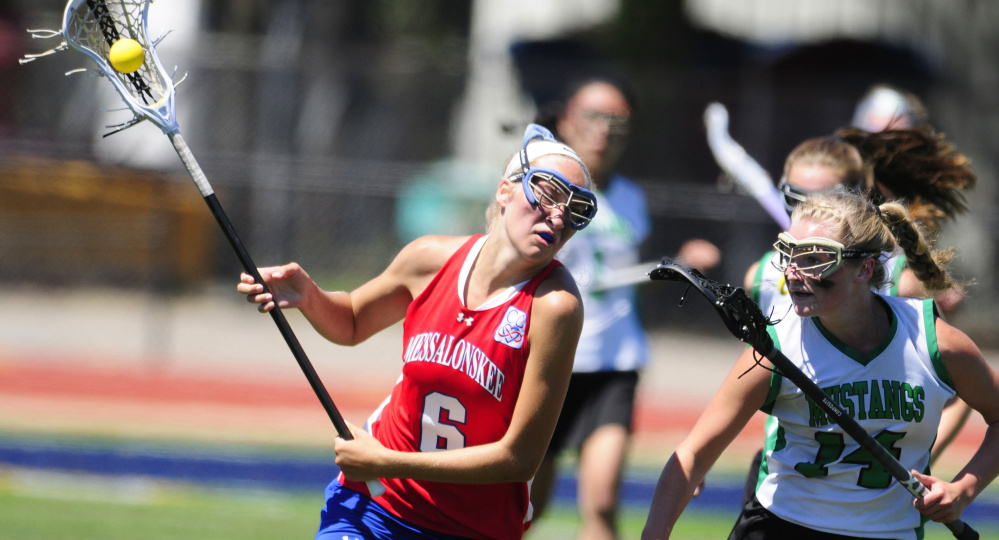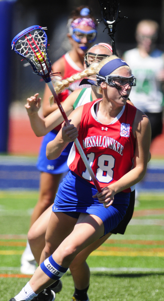 Nathalie St. Pierre of Messalonskee took one shot in the Class A girls’ lacrosse championship game Saturday.