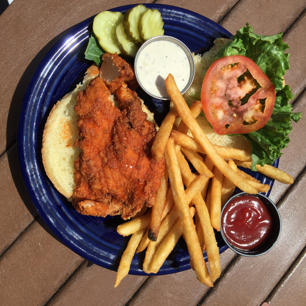 At Federal Jack’s, I immensely enjoyed the Buffalo chicken sandwich. Battered chicken was dunked in hot sauce and served with blue cheese dressing, tomato and lettuce. Yum. Sandwiches come with a choice of fries, fresh potato chips or coleslaw. Loved the fries — crispy perfection.