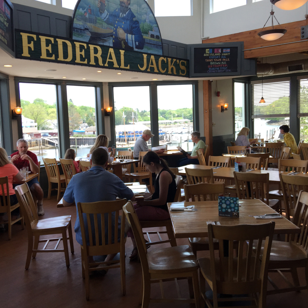 Federal Jack’s is the birthplace of my favorite Shipyard beers, and its second-story restaurant offers great views of the Kennebunk River. Picture this: We’re sitting outside on the deck in the sunshine, the river flowing by below us, a cold beer in front of us, awaiting a great lunch. Heavenly.
