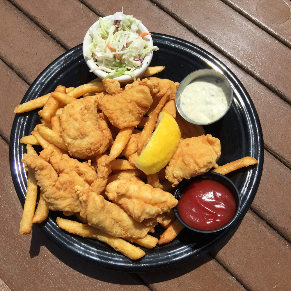 Downstairs, they brew some great beers and many customers stop in at the store there to take home the brew they just enjoyed in the restaurant. I tried one of their special seasonal ales, Solstice, and it was refreshing on this hot afternoon. My sandwich featured chunks of golden-fried North Atlantic haddock in a delicious tartar sauce, served with crispy fries. You can get a half portion, and Linda encouraged that, but I went for the full portion — and ate it all. I love any meal you can eat with your fingers.