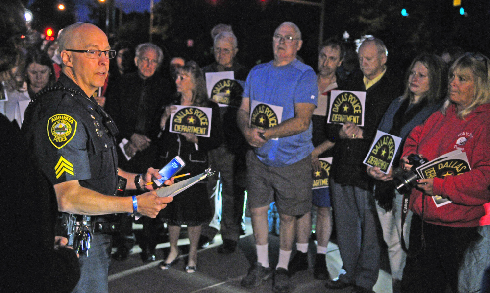 “It’s a tragedy,” Sgt. Chris Behr of the Augusta department, who organed the vigil, said Friday morning. “The officers down there in Dallas were protecting people. They were protecting protesters. It’s a terrible day.”