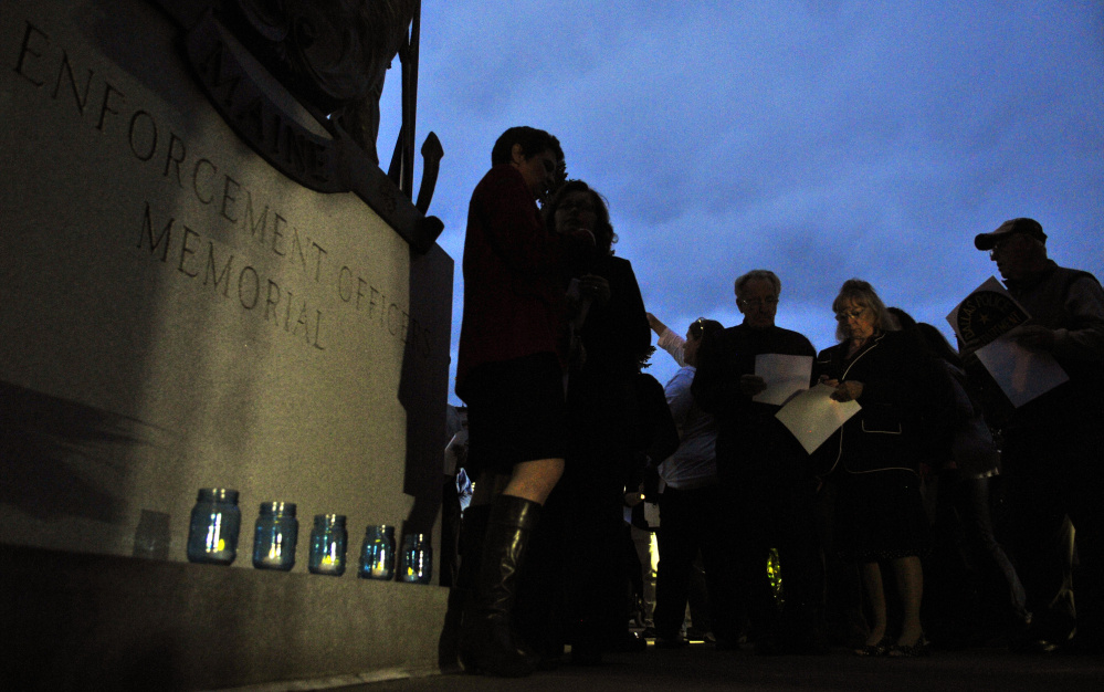 State Reps. Catherine Nadeau, D-Winslow, and Lori Fowle, D-Vassalboro, said they heard about the vigil from Maine Attorney General Janet Mills, and they came to Augusta in support of law enforcement. Both representatives serve on the Legislature’s Criminal Justice Committee, and said they work with law enforcement officials across the state and know their concerns.