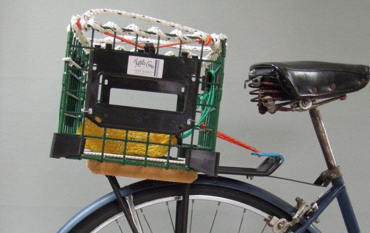 • Jim Huebener, an engineer, bicyclist and a part-time lobsterman from Cape Elizabeth, makes bike baskets out of old lobster traps. $52-70.