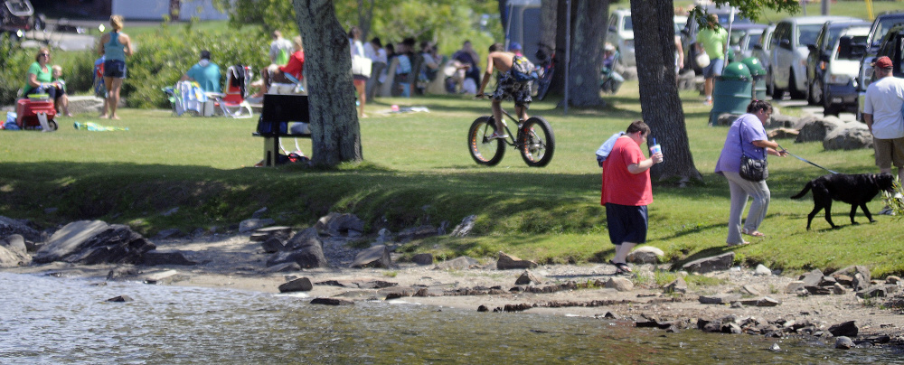 Rules established by the town in 1989 don’t allow a number of those acts at the beach, which consists of a roped-off swimming area in Maranacook Lake and a grassy lawn that is often populated by families during the nicest days of summer.