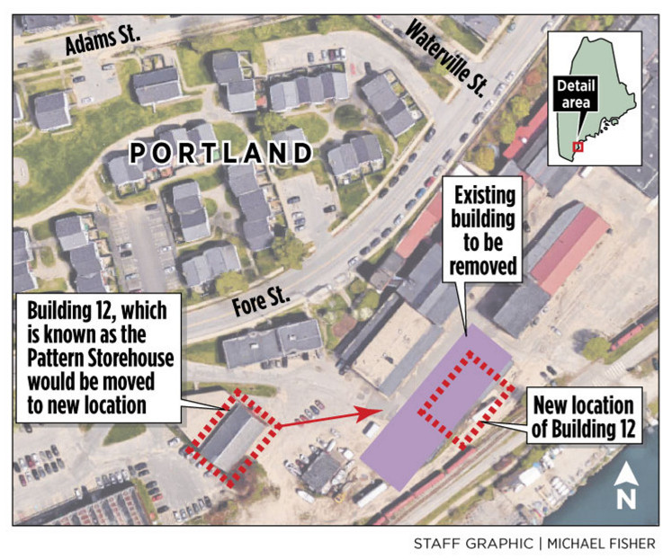 CPB2 is asking the city’s Historic Preservation Board for permission to move the former Portland Co. Pattern Storehouse so it can add a public road and build a parking garage and mixed-use buildings on the westernmost portion of 58 Fore St. That building is one of seven structures at the former railroad foundry that needs to be preserved during redevelopment because they are part of a historic district created earlier this year.