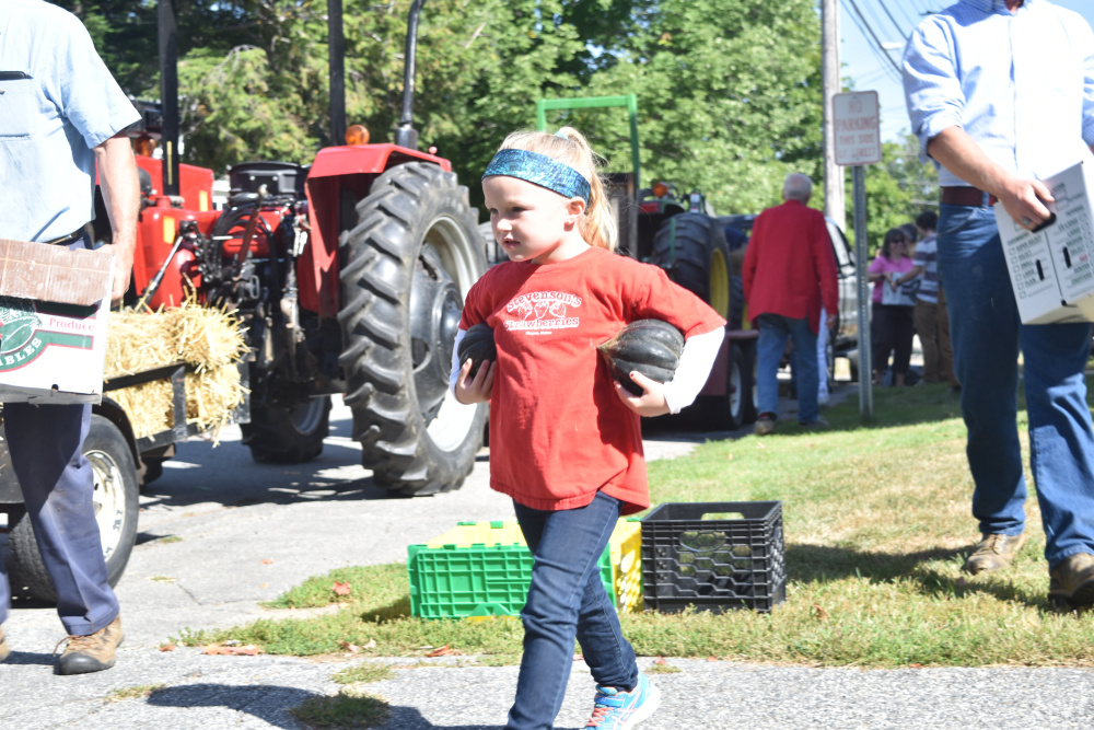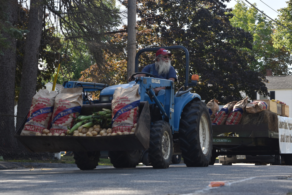 This is the first time the Maine Farm Bureau held a parade to end hunger. Even after a summer fraught with drought, eight farms joined the parade to donate some of their produce: Stevenson’s Strawberries, Lakeside Orchards, Bull Run Farms, Spear Vegetable Farms, Jordan Farms, Pie Tree Orchard LLC, Doak Farms and B Small Farm. They all rode from the Maine State House to the Augusta Food Bank with boxes full of vegetables and fruit on Saturday at 10 a.m. University of Maine Cooperative Extension 4-H Youth Development members walked along with the parade to collect canned goods along the route, which people were encouraged to bring to the event as donations.