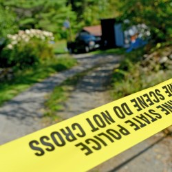 Police tape marks off the driveway to the Tieman home at 628 Norridgewock Road in Fairfield, where the body of a woman was discovered in the woods on Tuesday. Staff photo by Michael G. Seamans