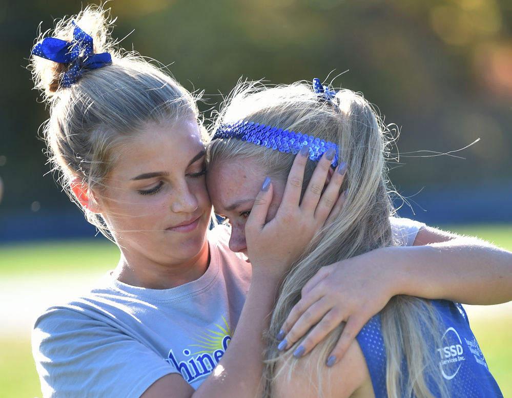 Meanwhile, the Messalonskee boys and girls soccer teams honored Charette before the boys’ last home game later Tuesday afternoon. Team members formed the number 11 — Charette’s number when she played on the team — and held a moment of silence to mark the passing of two years since she died.