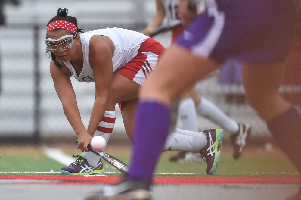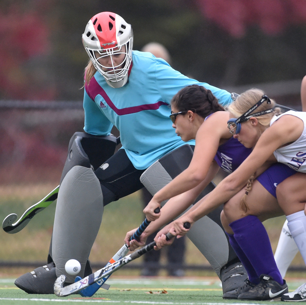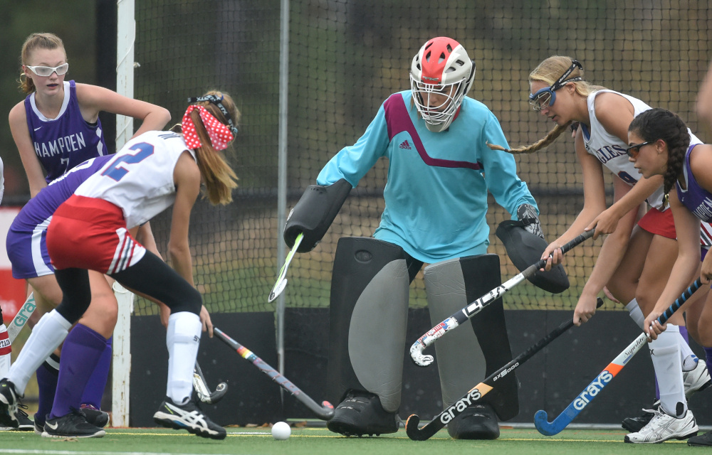 Messalonskee dominated possession throughout the game, limiting the Broncos to just two penalty corners and one shot on net. Hannah Pinney made one save for the shutout. The Eagles, on the other hand, peppered Hampden constantly. Messalonskee had 13 penalty corners, including five in the final 15 minutes of the first half, when the Eagles were unable to build on their early 2-0 lead.
