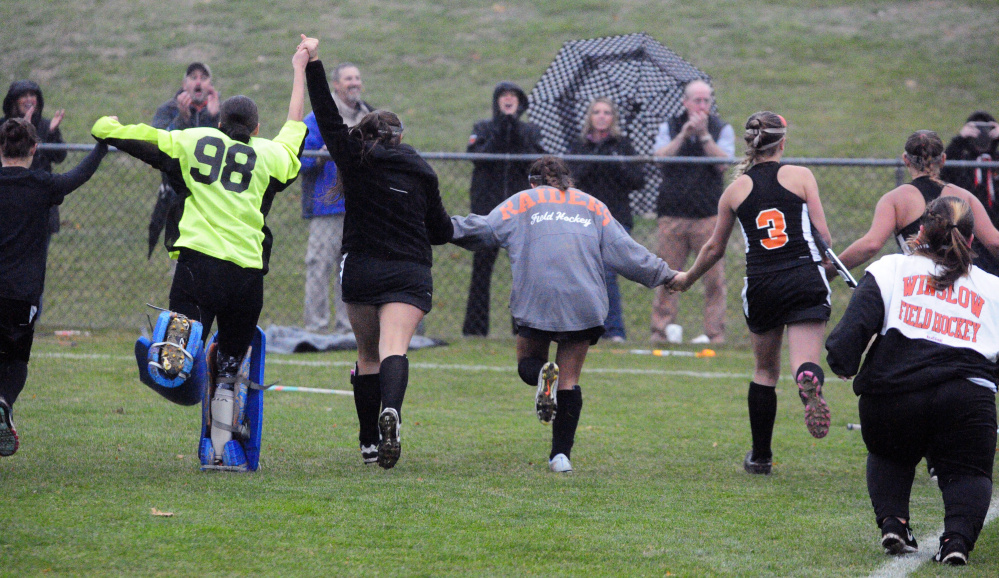 Backed by an outstanding performance from senior goalie Hope Winkin and two goals from sophomore Anna Petrovic, No. 7 Winslow upset No. 2 Gardiner 4-3 in penalty corners in a Class B North quarterfinal game at Somerville Field.