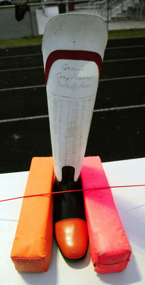Kenney, 78, played football at Cony in the mid-1950s and still works at the school. He remembers assemblies in which the opposing coach would travel to the winning team’s school to exchange the boot.