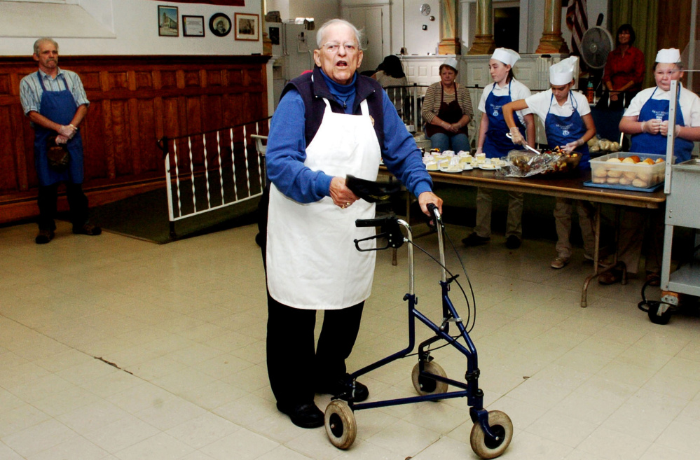 Willette is at the soup kitchen in the basement of Sacred Heart Church on Pleasant Street from 7 a.m. to 1 p.m. five days a week, despite the fact that his legs are weak and he must use a walker to get around. About six years ago, his wife of 59 years, Grace, died, and he was devastated. But two years ago, he married Gloria Beaulieu, who owns and runs a food pantry in Fairfield Center and pays all of its expenses. They met when she delivered food to the soup kitchen. He said he wants to be able to travel with her while he can.