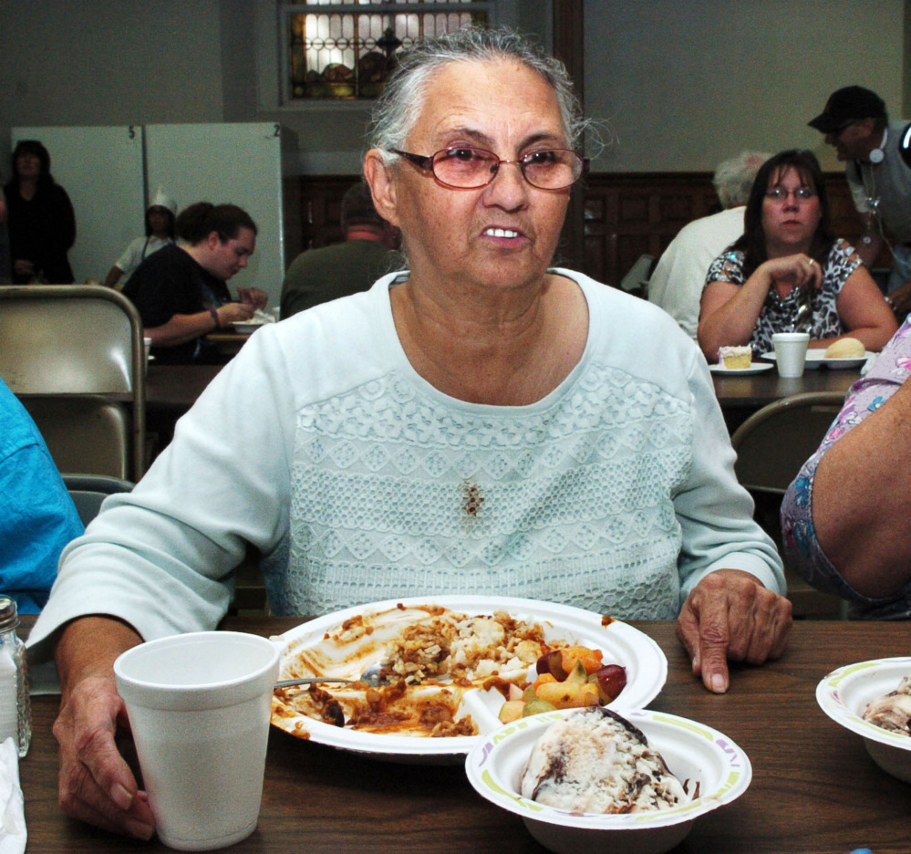 The long tables filled up with people, and Connie Wood, 65, of Vassalboro, was eating chili, rice and fruit salad with her husband, Ronnie, 74, and friends, including a homeless woman she invited to stay her house.