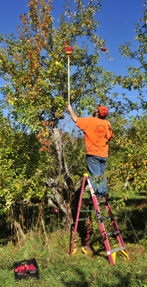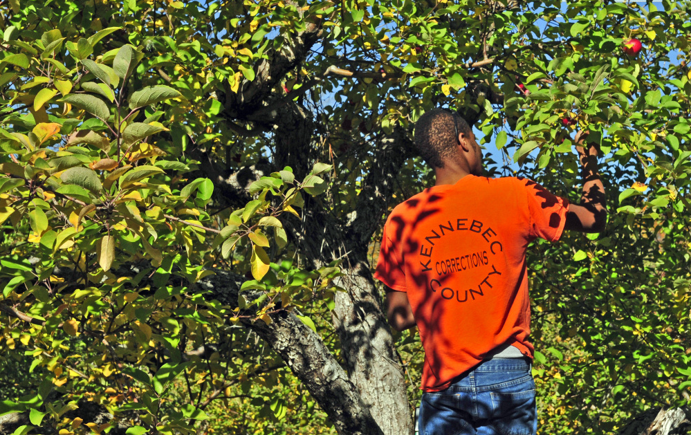 The commercial harvest had ended at Lakeside Orchards in Manchester on a recent morning, but that didn’t deter Terrence Wigglesworth and Michael Thomas, inmates at Kennebec County jail, from picking apples there as part of a project that’s meant to divert uneaten produce to those who need it in southern Kennebec County.