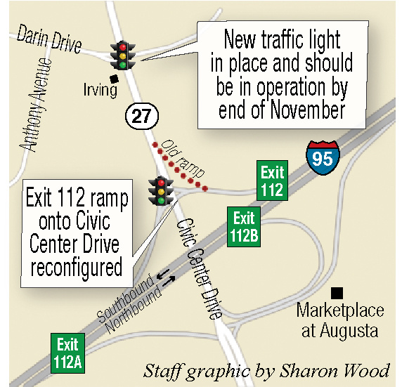 In connection with the new facility, the Maine Department of Transportation created a four-way intersection with a traffic signal on Civic Center Drive at Darin Drive.