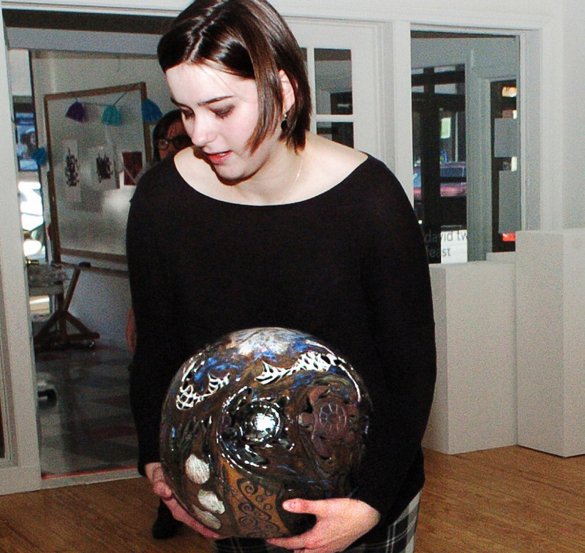The students helped Waterville Creates! program manager KiKa Nigals take down the “mud.” exhibit that ran from Sept. 29 to Nov. 5 at the Common Street Arts main gallery, then set up the holiday pop-up shop. The downtown shop, at 93 Main St. in The Center, will feature handmade items such as jewelry, pottery, paintings and sculptures from more than 40 artists and craftspeople.