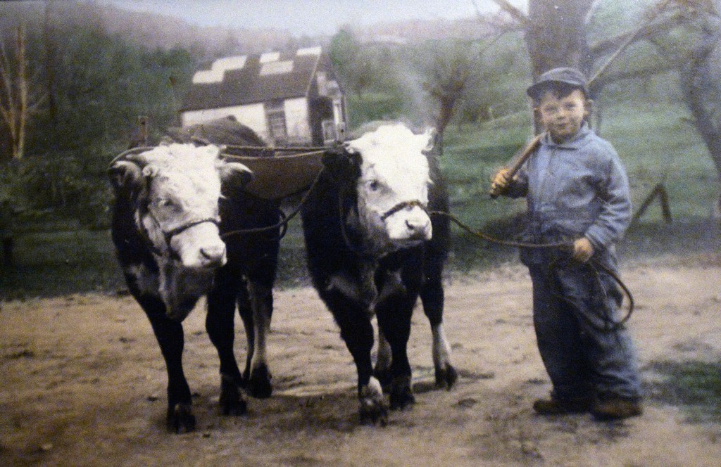 The farm – the mailing address is in East Dixfield, but the barn and two farmhouses sit in Wilton, Franklin County – was driven solely by horse-and oxen power until 1936, when the family, for the first time, bought a used tractor. The farm began milking registered Holsteins in 1945, and the Halls bought their first new tractor the following year.